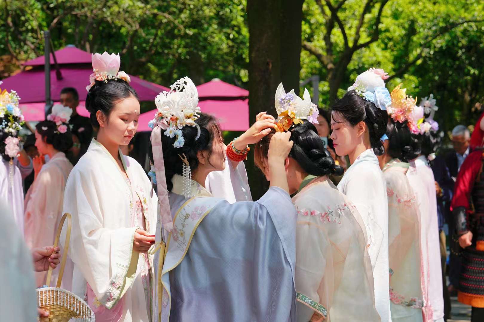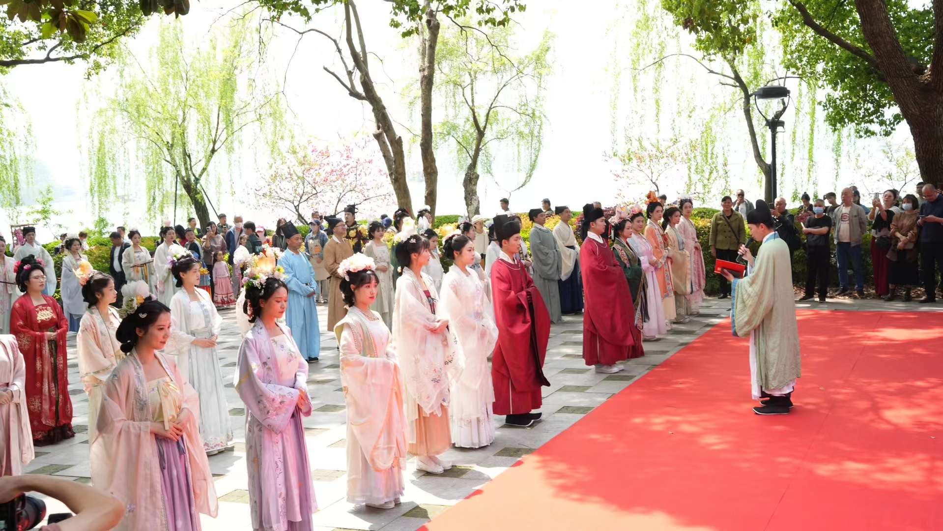 4月11日(农历三月三),上巳节,由汉天书院汉服馆、潮新闻客户端等联合举办的“宋韵簪花游西湖”特别策划,在西湖天地涌金楼前拉开帷幕。这场别具一格的宋韵簪花盛宴,再现了千年前,北宋欧阳修春词《采桑子》中:西子湖畔杨柳依依,游人如织,祭祀祈福的场面。