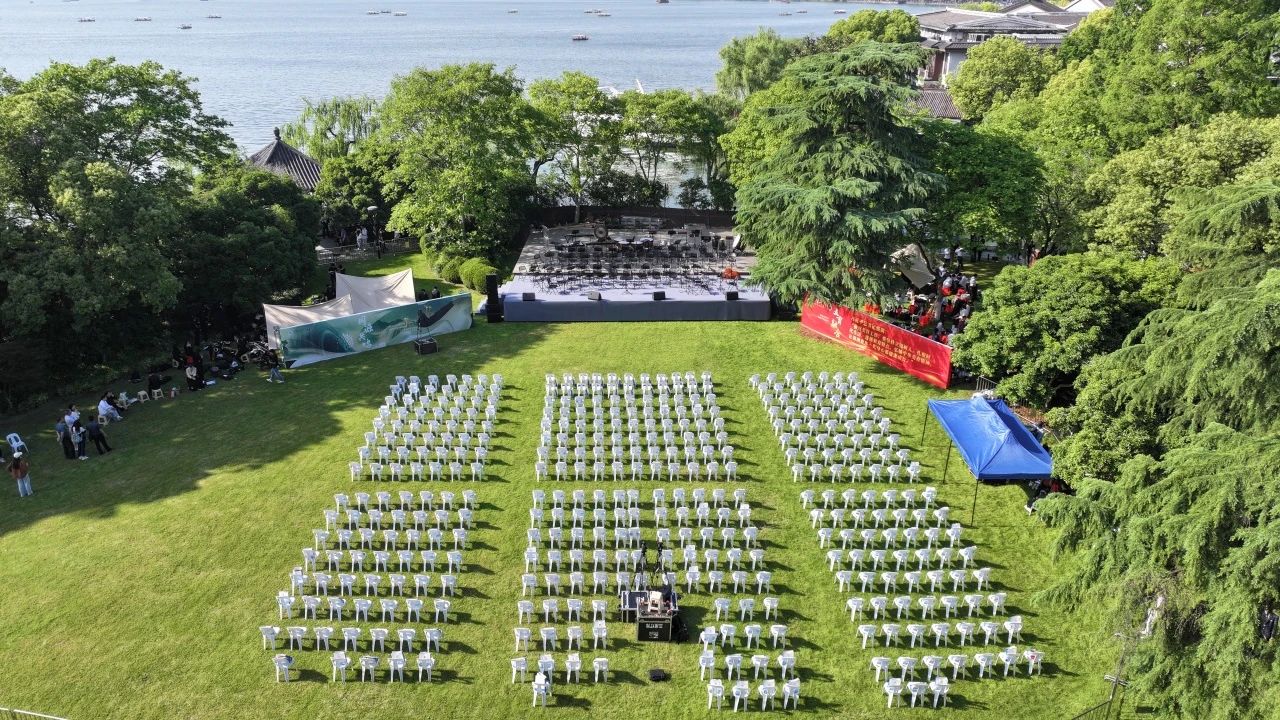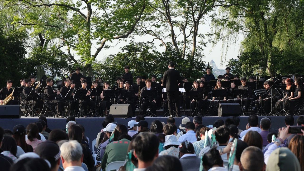 2025年4月26日,在西湖天地大草坪——这片见证百年文教传承的胜境,杭州第四中学交响管乐团与浙江大学管乐团联袂,以乐为舟,溯流而上,共谱教育薪火的时代交响,举办了"同源共鸣"主题音乐会。